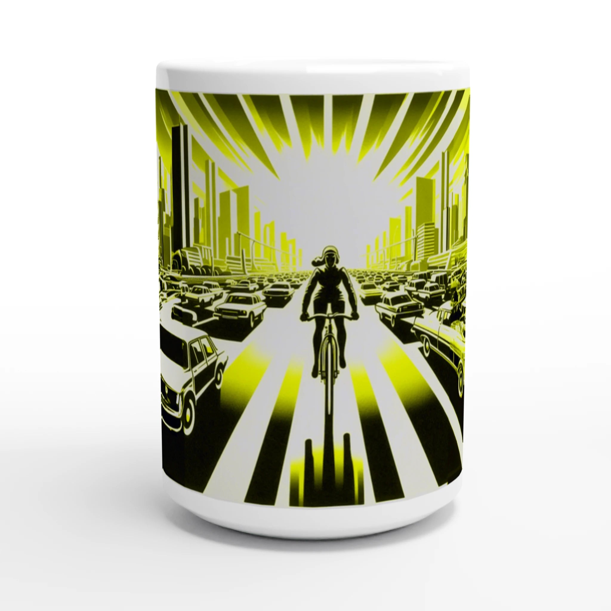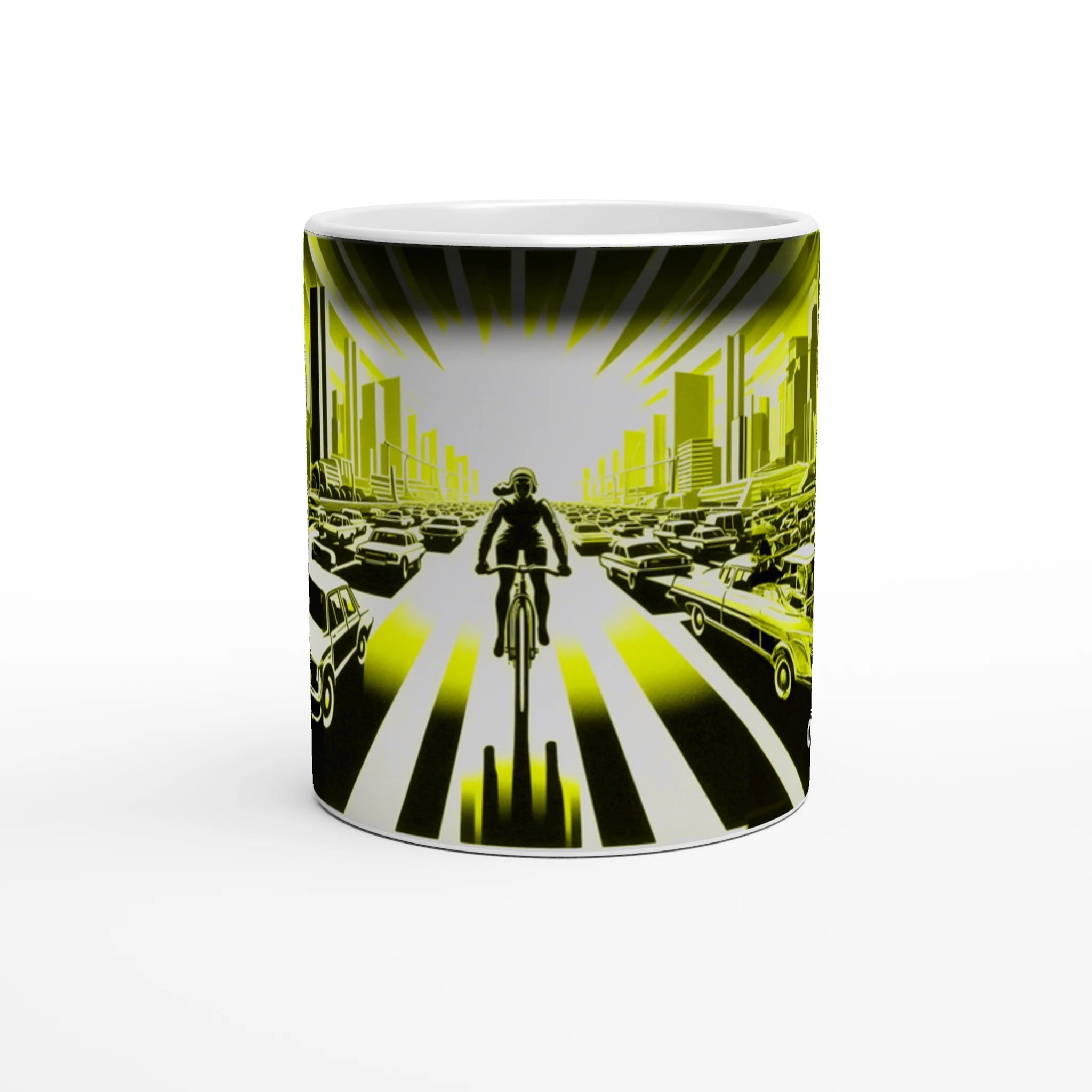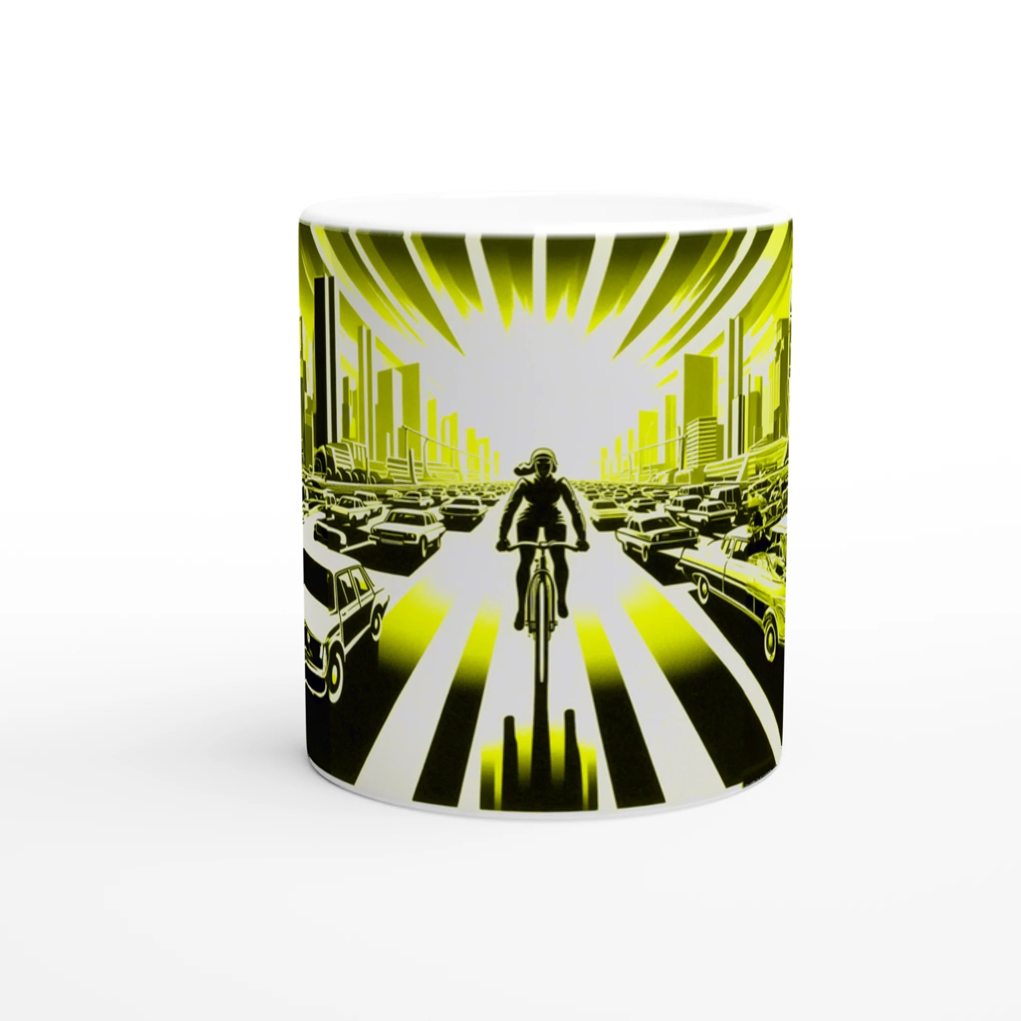 - White 15oz Ceramic Mug: Ample hydration for long, contemplative rides down tree-lined trails of introspection.